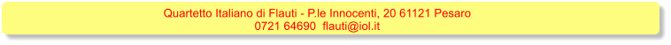 Quartetto Italiano di FlautiLes Flûtes JoyeusesSenigallia - Rotonda a MareConcerto dedicato a Mario Giacomellicon l’esecuzione di musiche del CD “Mario Giacomelli - Ritrattista dell’anima”e proiezione di alcune celebri fotografie del maestroM. Mangani - Gagliarda (da L’anima delle cose)M. Mangani - Giga (da L’anima delle cose)G. Gaslini - AlwaysR. Ortolani - Invito al ballo (da Suite)R. Ortolani - Gioco nel cortile (da Suite)A. Biancamano - La notte lava la menteR. Molinelli - Ritratti in bianco e nero(da Impressioni di metà secolo)R. Molinelli - Paesaggi a contrasto elevato(da Impressioni di metà secolo)D. Gasparini - La lente d’Oiram